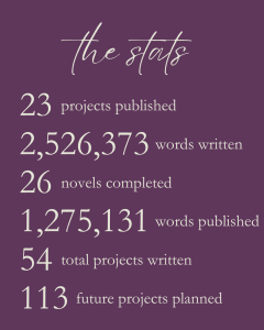I mean, I’ve won NaNoWriMo every year since November 2014 in additional to doing quite a few of their Camp NaNoWriMo challenges (so yeah, 11 times). I was a VERY active participant of the YWP program. I’ve joined dozens of challenges and groups and “camps.” In total, I wrote over a million words and 20+ different projects via this organization. (Stats, for reference.)