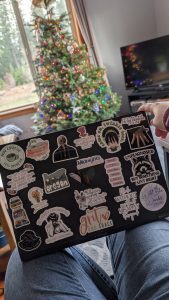 My new laptop! Complete with so many stickers that I just bought, lol!