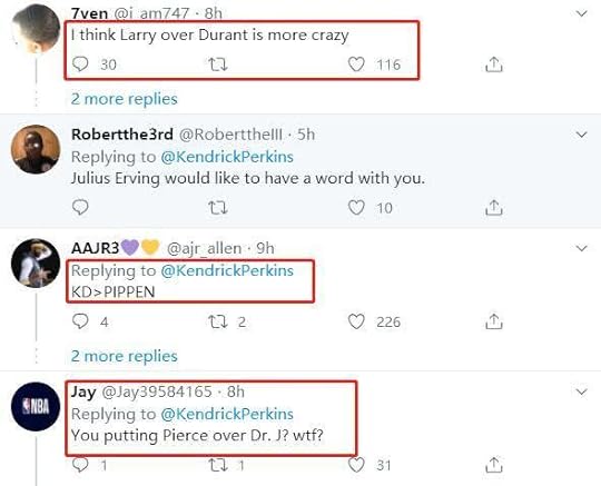 有人提名J博士应该顶替皮尔斯,因为J博士生涯成就更加辉煌!J博士生涯场均22分3.9助攻6.7篮板1.8抢断1.5盖帽,11次入选全明星(均为首发),夺得3个得分王,4个MVP,3个总冠军。如果你觉得J博士太过久远,那么至少莱昂纳德比皮尔斯更值得第5的位置。