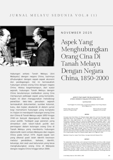Terima kasih Jurnal Melayu Sedunia (JMS) Universiti Malaya kerana menerima dan menerbitkan artikel terbaharu saya dalam Vol. 8 (1). Artikel ini merupakan penelitian saya kepada beberapa sumber perihal etnik Cina yang membentuk masyarakat majmuk di Tanah Melayu (Malaysia). Penelitian seperti ini pastilah tidak lengkap jika tidak merujuk kepada sarjana yang terkemuka dalam bidang ini iaitu Prof. Wang Gungwu.