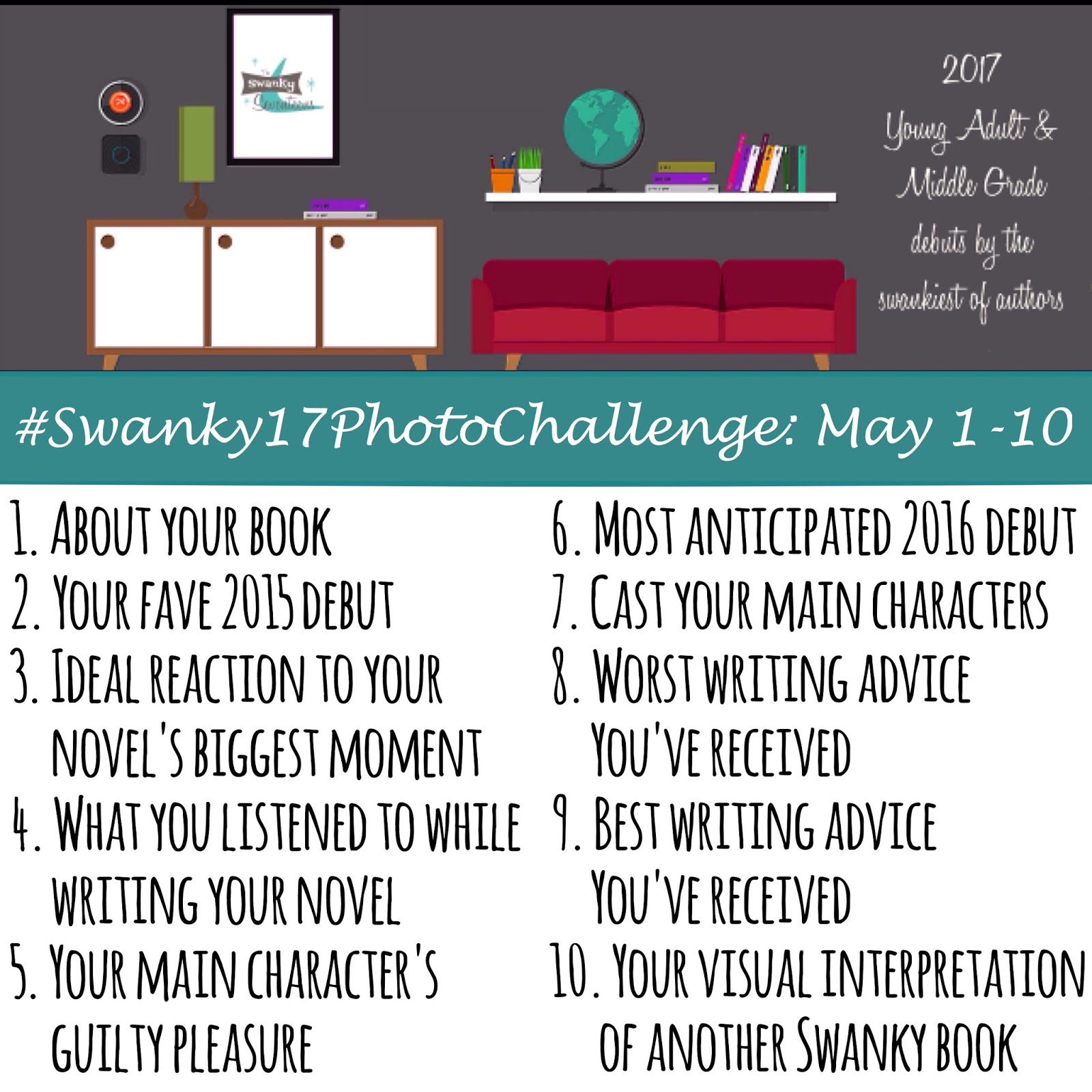 Starting May 1st, the Swanky 17 debut authors will be participating in a ten-day photo challenge! You can follow along on Instagram, Twitter, and/or Facebook to learn more about Seeking Mansfield. Stay tuned!