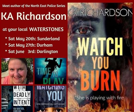 You’ll probably have noticed the fourth book in the north east police series is out now – Watch You Burn was released on 2nd May by my fabulous publishers, bloodhound books. And it’s been a crazy fortnight since then! The book is doing really well in the Amazon kindle charts – getting to a cracking 186 before starting to drop back down a little slowly. Thanks so much to everyone who bought it! And also to everyone who got I’ve been watching you and time to play whilst they were on promo. Sincere apologies to those few who ordered from Amazon and somehow received the I’ve been watching you text inside the cover for time to play – it was a glitch on the Amazon end and I’ve been reassured that anyone who received the wrong copy can speak to Amazon who will forward on the correct version.
