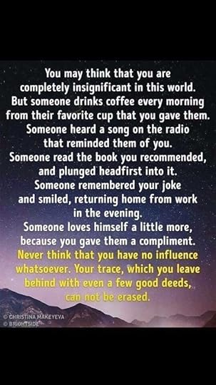 This absolutely resonated with me. Not just because I’ve been feeling rather low lately (I’ve suffered with depression for going on 20 years – when you add RA into the mix and the fact my meds aren’t working properly, you can understand how this would be an issue right now) and even when I’m feeling low, I still try and do things for others because that’s part of who I am. This made me think of all the things people do for me – things I quite possibly take for granted at times and don’t say thank you for. So thank you – all of you who have made any impact on me. Yesterday today or tomorrow.