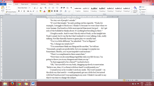 Most of the major changes are found near the end of the novel. There’s a few chapters that were completely rewritten, but majority kept a few scenes/parts/ideas. The characters have been built on, along with their relationships and exchanges..most of them have little quirks or characteristics that they subconsciously do, like Noah with running his hand through his hair when he’s nervous. There’s been a lot of simplifying of the structure and expanding to the overall plot. This includes more banter between Reed and Helena, arguments between Nolena, and many more lustful scenes with Darlena.