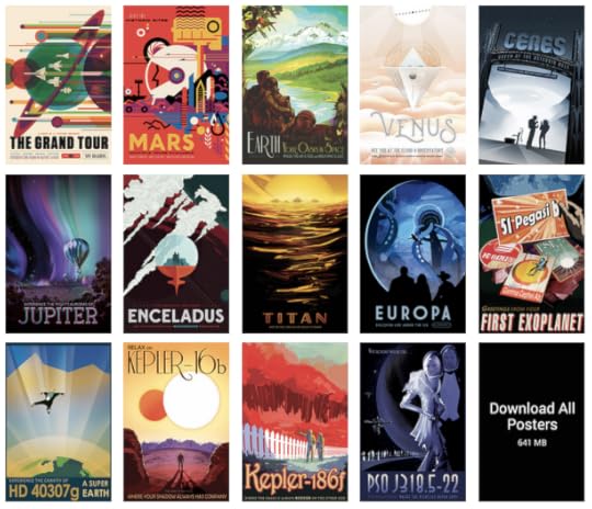 The story is part of a collection of sixteen. Each story starts with one of the humorous “Space Tourism” posters created by NASA and JPL. The posters apply the art deco style of the great steamship travel posters of the early 20th Century to imaginary escapes to the planets and moons of the solar system as well as to exoplanets first discovered in the 1990s.