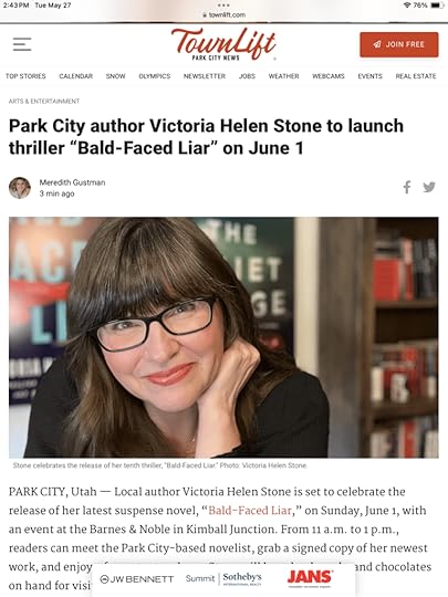 Bald-Faced Liar is my tenth suspense and my first true beach read. You can pre-order below. And you can read this lovely TownLift News article here!