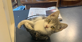 Carl now lives a life of luxury, no longer having to fight off skunks or other animals for food. He doesn't even need to fight off June or May, because, honestly, they haven't quite taken a liking to the little devil just yet. (Don't worry, he doesn't even recognize this fact.) So, what's the moral of this story? I'm not sure. Except it's a happy ending for an adorable kitten whose future was endangered.