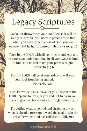 I hope and pray these words have inspired you to think about your legacy. Have you been inspired by the legacies of others? What do you hope to leave as a legacy?
