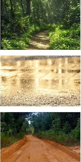 As visions, I love to see . . .A baby’s face crinkling into a smile. Dappled sun on the forest floor. The first spring leaves upon the trees. Bare branches’ intricate lacework in winter. Glisten on the sand after waves’ retreat. Speckled leaves, red, orange, yellow, purple, brown. Red dirt roads with clay ruts and eroded or banks. Kudzu monsters. Ladies in ball gowns. Fantasy animals in cloud puffs. Mimosa pink powder puff blooms Cool dew-jeweled violets in spring shade. Puzzle patterns in bark Stone striae in black, gray, white.