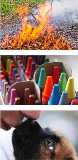 Dry dust when first spattered by rain. Vanilla flavoring. Autumn leaf fire. Dark, moist, rich forest floor after rain. Baking – cookies, bread, cakes, pies. Peppers and onions sizzling in butter. Splashed hot pavement around the summer pool. A new box of crayons. Sun dried cloth diapers. Coffee. Leather. New car. Puppy breath.
