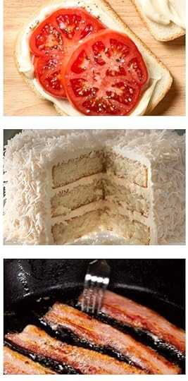 The first home-grown tomato of summer: plus the mayo, salt, and pepper. Mama’s dressing with giblet gravy – smothered in memory. Creamy New York cheesecake – sliding, smoothing. Hot fudge. On ice cream. With nuts. And whipped cream. A grill-seared steak – juicy and fat. Ice cold watermelon. Spit the seeds. Rich’s coconut cake. Tropical delight. Bacon. Bacon. Bacon. Hot from the oven cornbread. With butter. The perfect French fry. Nearly unobtainable.