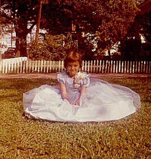 There were a few times I came close to living out those dreams. Around the age of five, I got to be a Rainbow Girls page and wore a long blue dress and a corsage. If I’d had my choice, everything in my closet would have had sparkles, ruffles, satin, and lace. When I was eight I got to wear a gorgeous yellow satin and chiffon dress as a junior bridesmaid in my sister’s wedding.