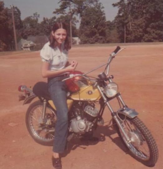While engaged, my soon to be husband had two motorcycles. A big Triumph street bike that I never learned to manage, and a small Suzuki 90 trail bike I became adept at zooming over the powerline trails. That was pretty bohemian at the time – the early 1970s.