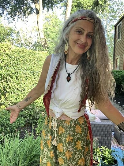 If you were to look in my closet now you would see, lace, ruffles, beaded embellishments, and gauzy romantic hippie type clothes. I also have hats-wide-brimmed ones with flowers, fascinators, cowboy hats, cloches, and fedoras. It took a lifetime of having to be somewhat traditional – working in a doctor’s office, a church, and teaching public school, but now I can be my true self.