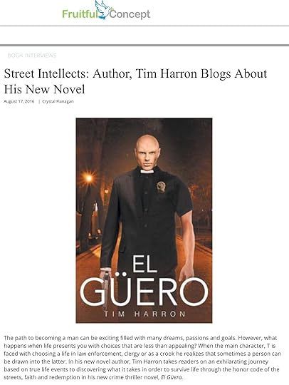 I had the privilege of being interviewed by Crystal Flanagan. She's not only a talented author but a crusader by providing uplifting motivational content to the world. I was honored to have her interview me and speak on my novel. Crystal's poignant questions touched on aspects of my novel as well as some personal insights that I had been waiting to speak out on. From my main character T-(El Güero's) faith to my inspiration for writing El Güero. Follow Crystal's online Christian motivational blog @fruitfulconcept.com.
