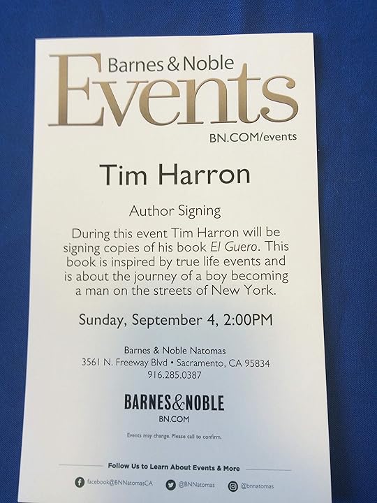 An over the top successful East Coast book tour is in the books. I began my tour @ the B&N in Kingston NY, welcomed with open arms. I switched gears Sunday and appeared at the B&N in North Haven CT. The hospitality continued throughout my tour taking me next to B&N Waterbury CT. Palisades B&N began my final weekend, followed up by B&N Stamford CT and last but certainly not least, B&N Danbury Square CT.The amount of quality people I was able to meet and interact with, exceeded all of my expectations. The conversations surrounding my book brought about such a positive flow of conversation I'm truly appreciative.I would have to say my final destination was the icing on the cake for me. For the first time my parents came to see me sign and discuss my novel. Having them join me on my last day was something I'll always treasure.The sequel to El Güero is being finalized. knowing me I'll be re-writing it a couple more times but know it's forth coming. I look forward to meeting more lovers of literature!!