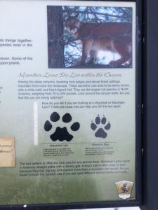 Having written about a mountain lion, I had done some research on the animal. There are about 300 big cats in the Black Hills, and when I say big, I mean between six and seven feet long and 150-200 pounds. They shy away from people, and while they can attack humans, they rarely do. All of these facts didn’t ease the terror in my heart when I saw the enormous, tan cat with its muscular body and thick tail. Ironically, I had just read a plaque about the cat—out loud to my husband—because teachers do things like that, especially when we’re on a hike and see a plaque. Luckily, my kids were back at the cabin, watching a movie. Otherwise, I might have grabbed them too, and my dog is heavy enough.