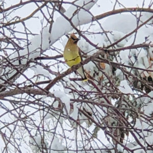After seeing one on the news, I thought this was a yellow cardinal, but it is actually a Cedar Waxwing. Isn’t it beautiful?