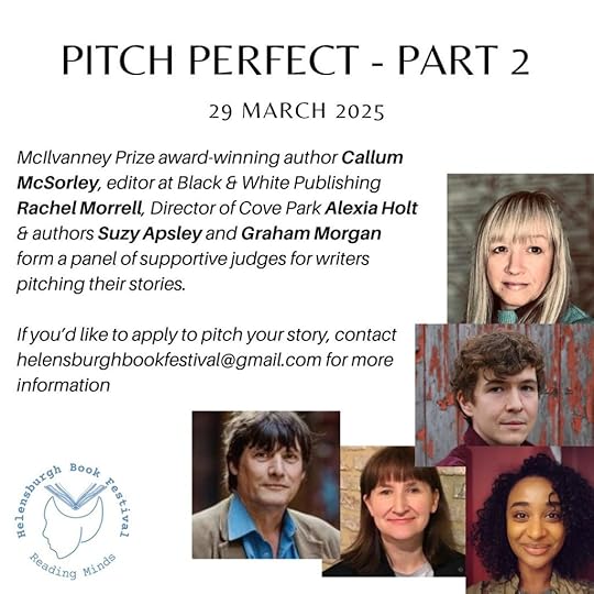 First up, on Saturday 29th at 1pm, I’ll be one of the judges for the Pitch Perfect event alongside fellow authors Suzy Aspley and Graham Morgan, editor Rachel Morrell, and director of artists’ residency Cove Park Alexia Holt.