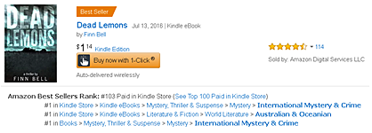 Very happy to say that today my first book 'Dead Lemons' officially has it's Best Seller label charting at Number 1 on Amazon in International Mystery & Crime Books. A big thank you to all my readers.