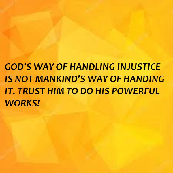 God encourages “his” people to DO RIGHT and ACT JUSTLY while upon earth. “...Learn to do right; seek justice. Defend the oppressed.Take up the cause of the fatherless; plead the case of the widow...” (Isaiah 1:17 NIV).