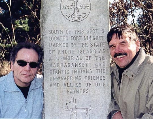 Writer/historian Jack Dempsey (left) and painter/archaeologist David Wagner (right) in 2003, on the hunt for new facts about New England’s first war, against the Pequots of Connecticut