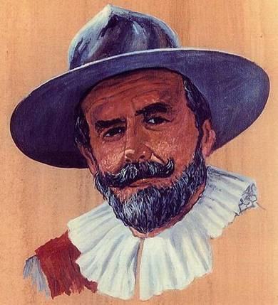 And here is David—or rather (!), here is his conception of Captain John Mason, one of the two chief bumbling bloody evangelical mercenaries who wished they had massacred Pequot people on behalf of the Puritan colonies. I never could make David explain why he gave Mason his own face—of all people!