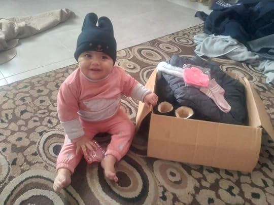 Little Mary Ismael (now 11 months old) likes the new keep-warm clothing the family has received from humanitarian aid organizations!