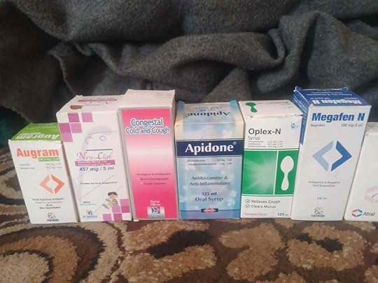 Just a few of the medicines (from humanitarian aid organizations) helping Muhammad’s whole family to get well from the flu. Every month in these hellish conditions breeds strong new strains of infectious disease.