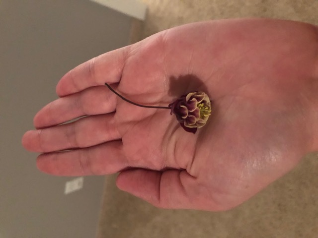 There stood my boy, who had somehow found his way outside by himself. I opened the door, and he held up a single flower for me.
