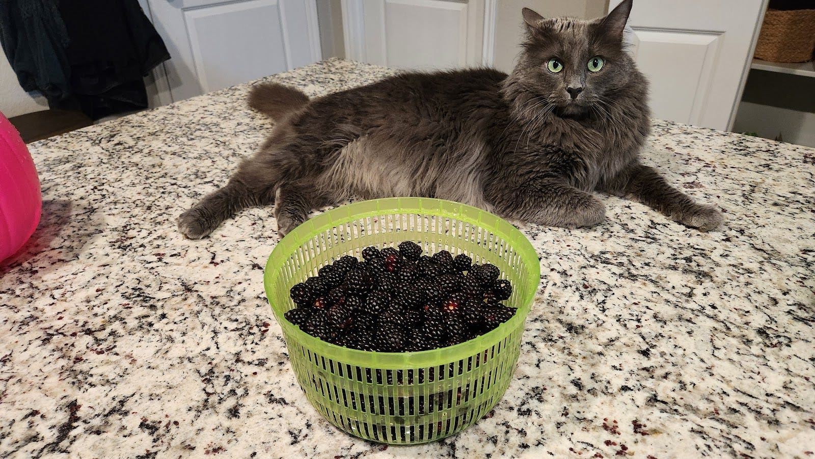 Make sure the fruit is clean and mash it up in a large sterile container, preferably glass. Using frozen fruit is not bad as the freezing helps to break things down so the yeast can do its job a little easier. With fresh-picked fruit, this may actually help you out a lot because picking several pounds of blackberries (for example) is probably not a one-day endeavor. Freeze as you go and thaw when you're ready to start making wine.
