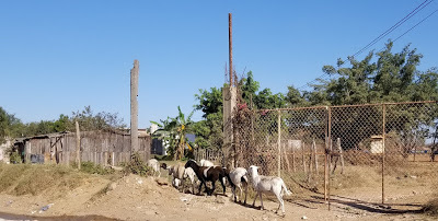 Sheep or goats? I first thought goats, but a closer look revealed that they're recently shorn sheep. I think.