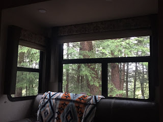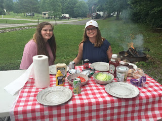 Despite the rain, we had a really good weekend. It didn't rain a lot and the clouds kept the temps down and made it perfect campfire weather. We even got to use our electric fireplace in the camper. That's always cool.