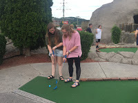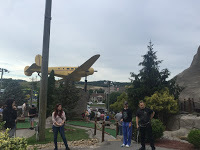 We had to take a train to the top of the hill and then work our way down the hill by playing the various rounds of mini golf.