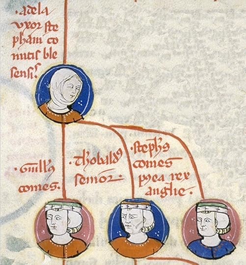 Maud and Stephen were of course first cousins, as the offspring of two children of William the Conqueror. Stephen was the son of Adela, the Conqueror’s daughter.