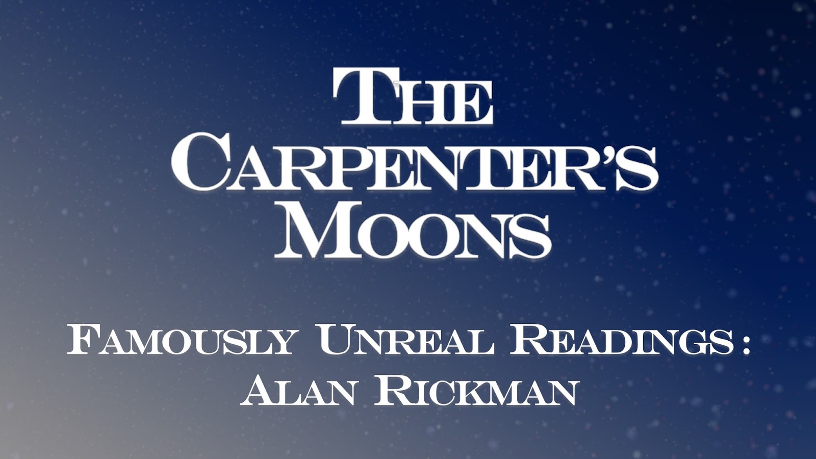 ��� and so we arrive. The 2nd episode of Famously Unreal Readings: Alan Rickman reads The Prologue from The Carpenter's Moons. You can watch the result here - Famously Unreal Readings 2: Alan Rickman reads The Prologue from The Carpenter's Moons