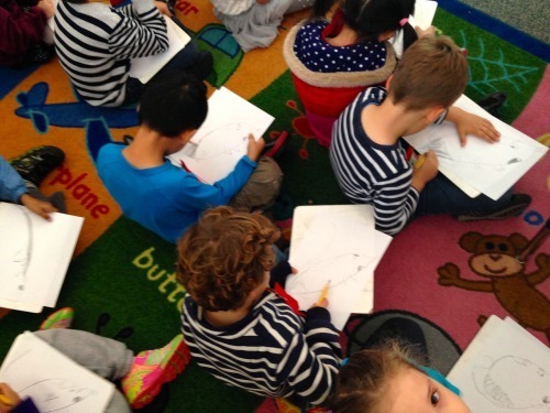 Having a great time with the kids as Magdalena the illustrator of Why is the Moon Following Me? teaches them to draw.  I asked the kids what they thought the book was about and one girl said ‘mouses and their people’. Almost (that’s the sequel)