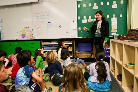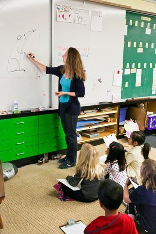 My friend and neighbor Valerie Sabbag is one of those teachers. An educator who is always pushing herself and trying new things to make her class fun and engage the kids way that they don’t notice they’re being taught. They think they’re just having fun. I called into her classroom last August and she was standing there with big pots of special white paint, painting all her desks in whiteboard paint so her incoming students could write on the desks and take pictures on their ipads of their work and save them in folders. Not only does it save paper, but also the kids get to write on the furniture and mess around with technology.