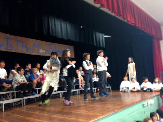After months of work Room 23 5th Grade, got to perform their play in front of the whole school at assembly.