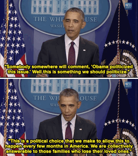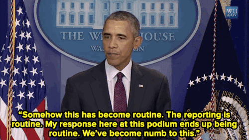 Hours after today’s massacre in Oregon, President Obama took the podium for the 15th time after a mass shooting. Sounding stern and appearing frustrated, Obama challenged Americans to respond more forcefully to this shooting. His full, impassioned statement is one every American needs to hear.
