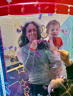 Now they have a Chuck E Cheese wind tunnel and since my grandson was afraid to go in by himself, guess who was nominated? 😵💫 Someone had the brilliant idea to catch the tickets in my shirt and I was still finding them 15 minutes later.