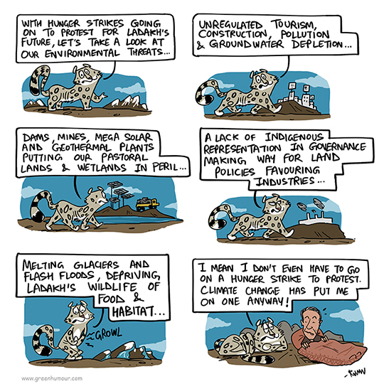 Mass hunger strikes and protests are underway in Ladakh for environmental, cultural and governmental safeguards. But Ladakh's wildlife doesn't even need to go on a hunger strike!
