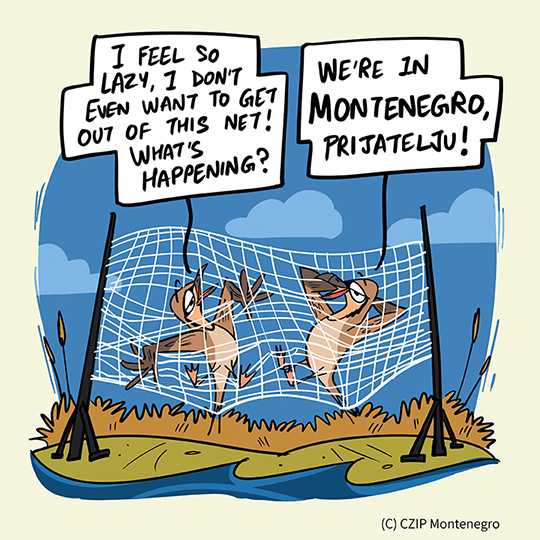 I recently had the pleasure of collaborating with Birdlife Montenegro over three delightful cartoons on bird ringing, that were used as creatives on communication collateral and merchandise at the bird ringing camp at Ulcinj Salina, an important wetland and migratory bird pathway on the Adriatic Sea.