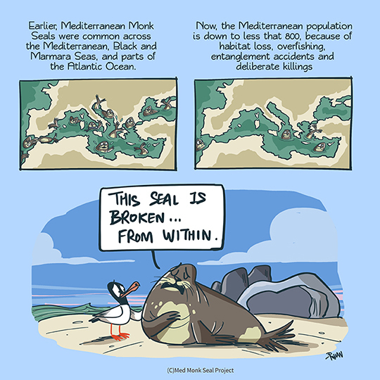 Earlier this year I had the opportunity to draw cartoons on one of the most desired mammals on my wildlife wishlist- the Mediterranean Monk Seal. The cartoons are meant as commuication resources for SPA/RAC's Mediterranean Monk Seal Project, to unite biologists, conservationists, funders, governments, fishers and citizens in the conservation of the Mediterranean Monk Seal.