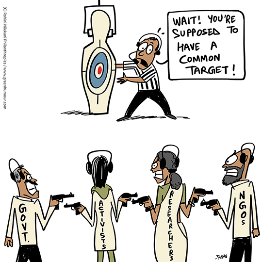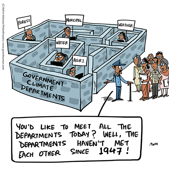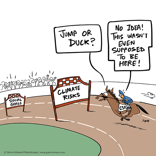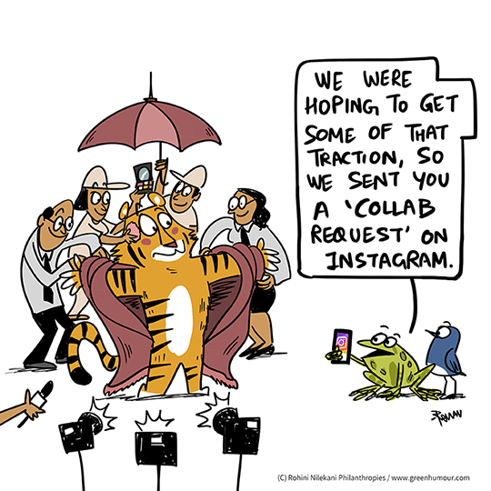 Cartoons created for the Rohini Nilekani Philanthropies' gathering of their climate and environment portfolio grantees, which were designed as caption contests for the participants. While the cartoons I am posting here bear my original captions, the cartoons initially displayed to the participants were captionless, inviting them to team up over filling in the caption clouds, resulting in a delightful icebreaking and team-building exercise, as well as some truly hilarious and ingenious captions!