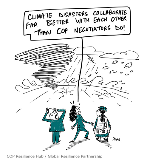 A big thanks to the Global Resilience Partnership for continuing my association with the COP Resilience Hub this year as well! Sharing some cartoons created live during the opening session of the Cop Res Hub (11th November 2024).