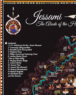 This illustrated map details Jessami's rich biodiversity- to be used both as a handy tool for locals and guides, as well as collectibles and souvenirs for tourists and wildlife enthusiasts. The map's visual style and illustrated elements pay homage to weavers of the Chakhesang community, whose art is passed only in person intergenerationally, and created seldom with any monetary motive!