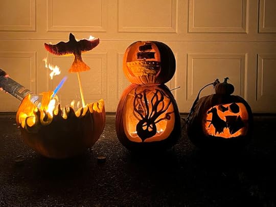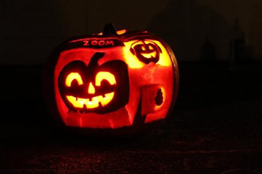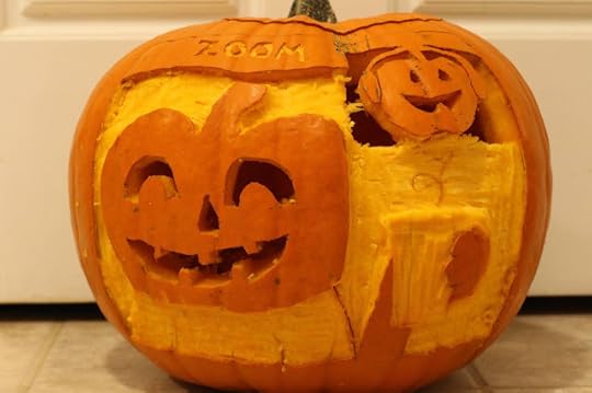 And even though it means that the LITERAL HOURS I spent agonizing over the layering on my own pumpkin did not net me the victory, I'm genuinely pleased to say that the brilliant mind (and hands) behind Pumpkin B is the man himself, Mahon Baldwin. Those of you who've followed our contest for a long time will probably remember that Mahon has almost NEVER won, despite carving some true masterpieces. When he told me the idea he had for the dumpster fire pumpkin earlier this month, I immediately said, "Oh, that's definitely going to win." I admit, my Zoom-o-Lantern turned out so much better than I'd imagined that I thought it might give Mahon's creation more of a run for its money... but in the end, the visceral pleasure at seeing 2020 represented with flaming trash spoke to the most people, and I can hardly fault anyone for that!