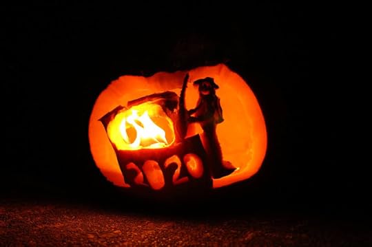 Now, every year before we start carving, I predict the winner based purely on concept. I'm almost NEVER correct—so much so that it's become a running joke in our family. But this year, I was 100% on the money, because I just knew that the idea of 2020 represented as a literally flaming dumpster fire was going to be something that resonated deep down in peoples' souls.