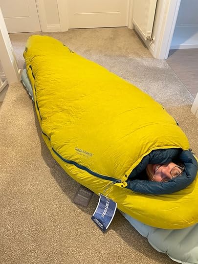 Twenty minutes later, I’m still shivering, so I put on a jumper, fleece, woolly hat and gloves, then pull the sleeping bag right over my head, until only my mouth and nose are visible, and I lie there, feeling chilled and trying to sleep. It’s very uncomfortable, but I can’t move because every time I do, I feel cold air drift into the sleeping bag. This isn’t much fun!